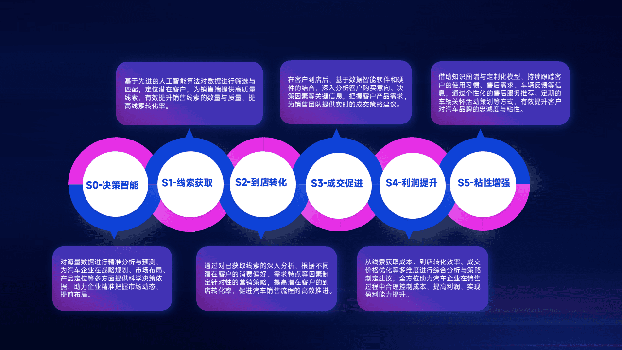 通过拓宽潜在客户来源、、、、优化线索分配并提高到店转化率,,以增强销售效率。。。同时,,利用线索数据不断优化分析模型,,,,有效提升转化率,,,扩大营销影响力。。